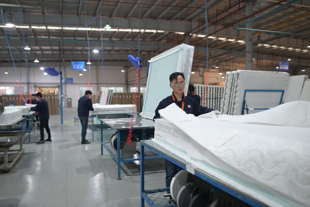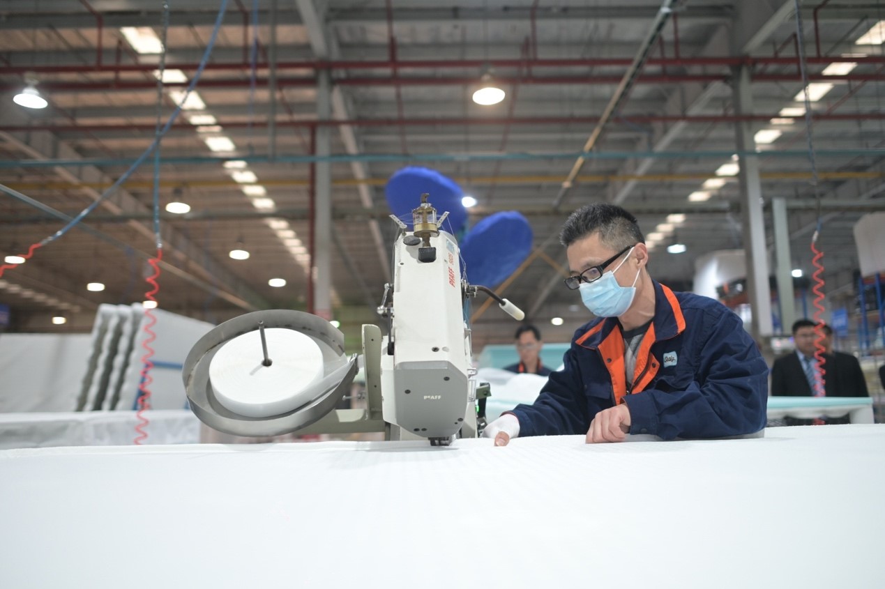 (圖:媒體參觀上海絲漣床具廠)